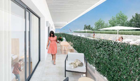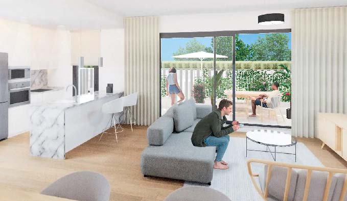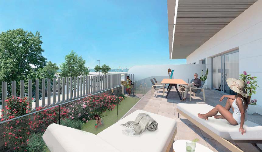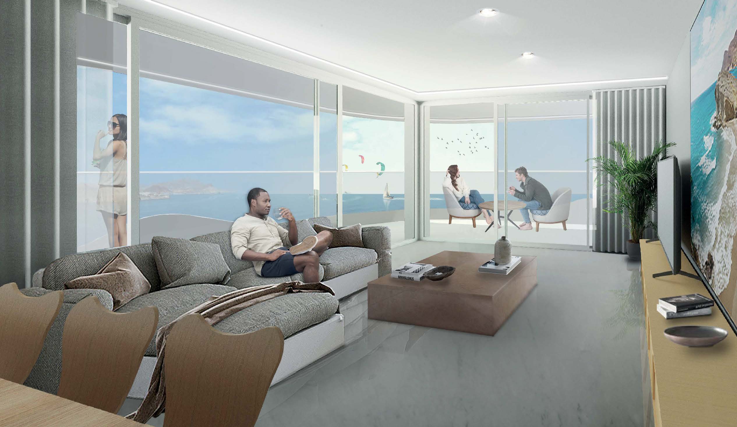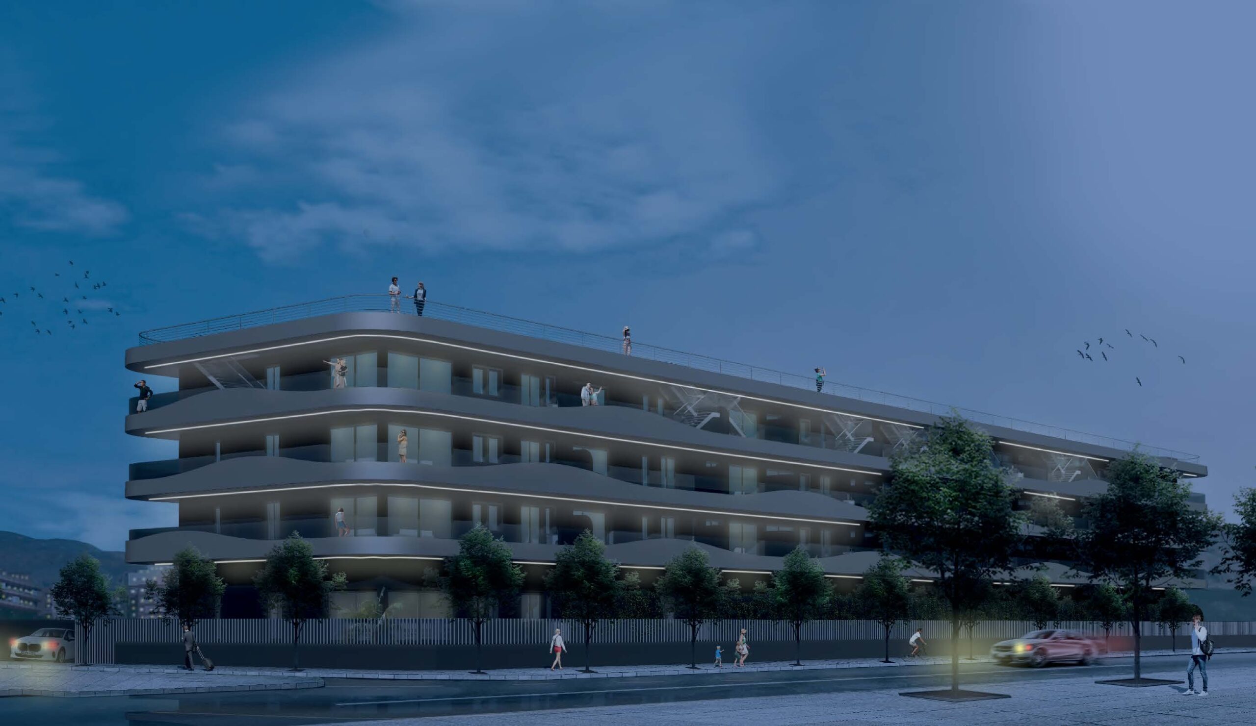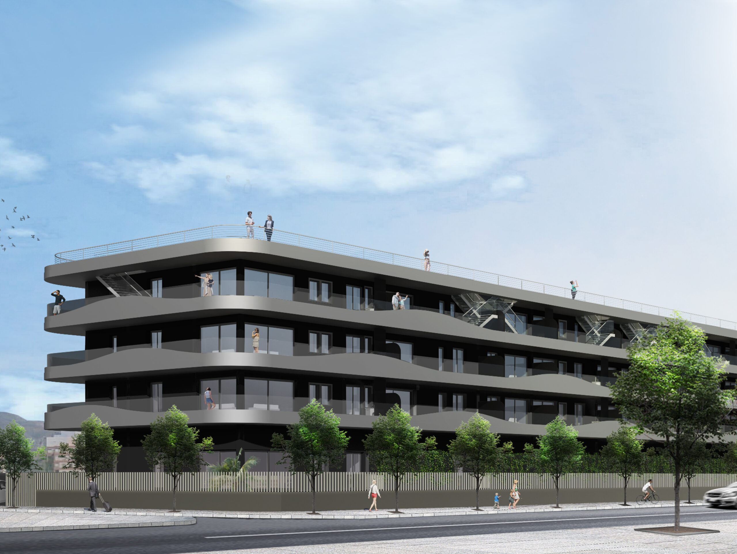 These 40 homes in Nueva Almería, on the beachfront, seek connection with the sea through their aerodynamic character with rounded corners that reference the large cruise ships that increasingly sail the waters of the Bay of Amería. This building is designed with three areas of common spaces (pool, children’s games, and Mediterranean garden) for the enjoyment of its users and families. All the homes on the top floor have private access to an independent solarium.