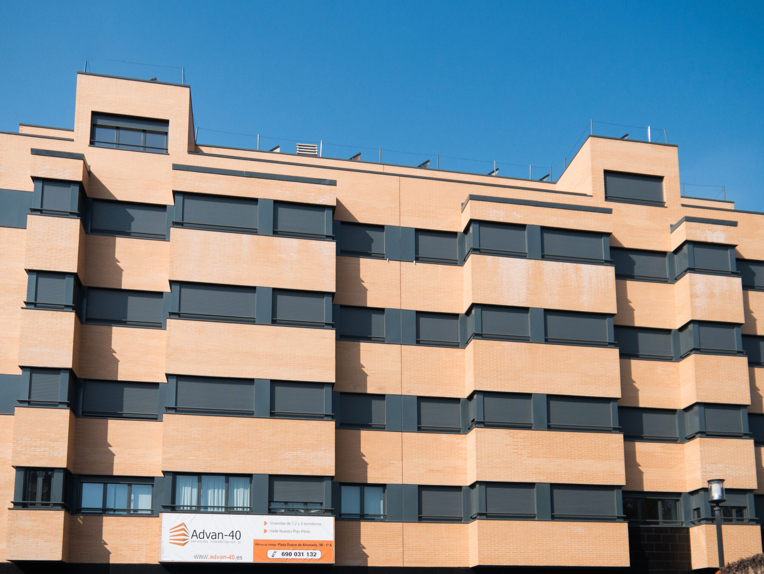 Block one has two portals facing the Duque de Ahumada square on the ground floor, and the homes are organized around two staircase and elevator cores from the first floor to the attic. Block two has a single portal facing the access area to the interior plot space, connected to respective staircase and elevator cores from the ground floor to the attic. The commercial space is located on the ground floor of block one, facing the Duque de Ahumada square.