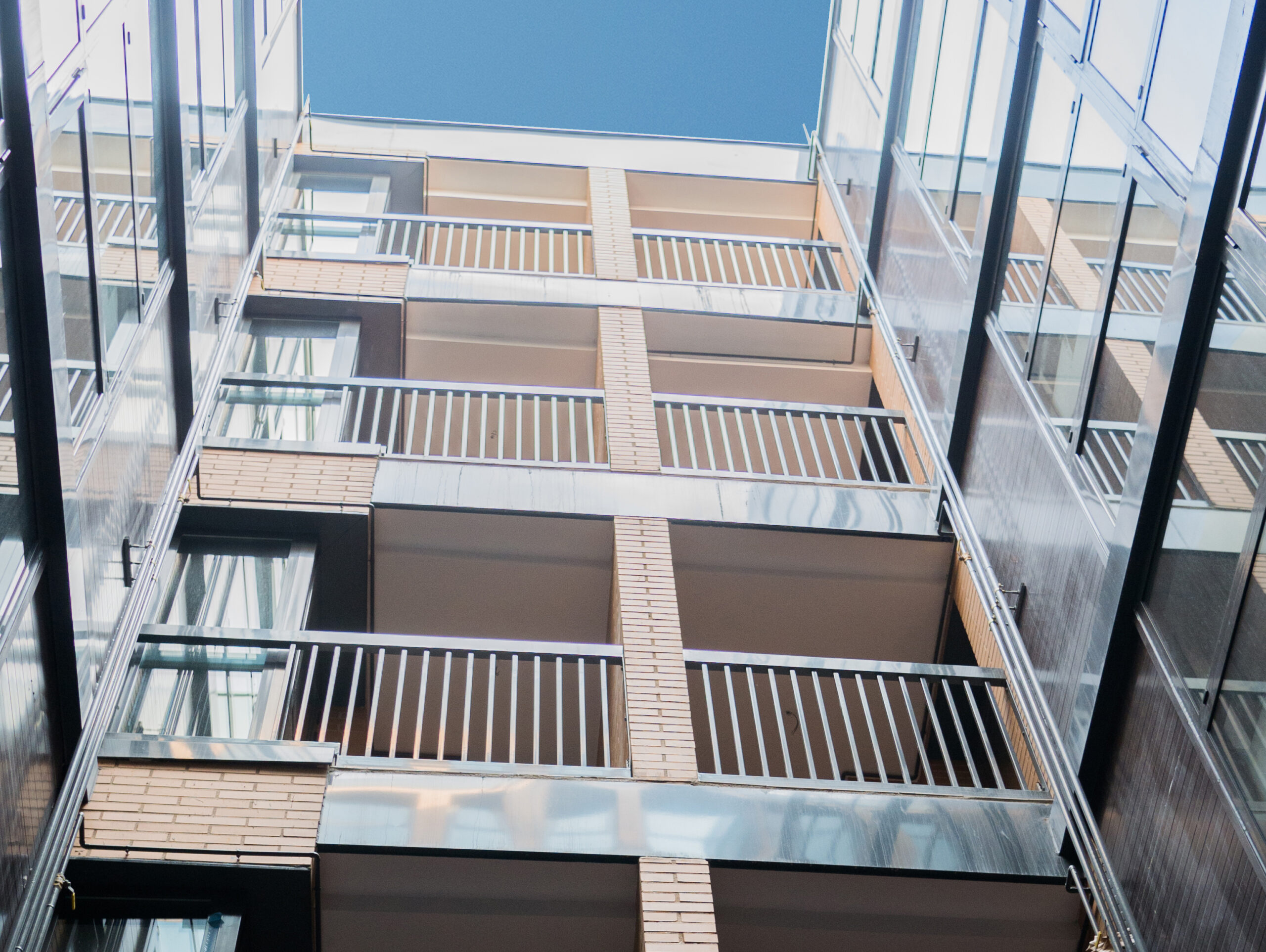 It is a purely urban project where the priority has been to find an architectural solution that allows achieving a high building density on a plot with little front and significant depth. For this, it was decided to introduce courtyards for the ventilation of kitchens and staircase cores. This has also allowed us to optimize common spaces, making them attractive with minimal surface impact.