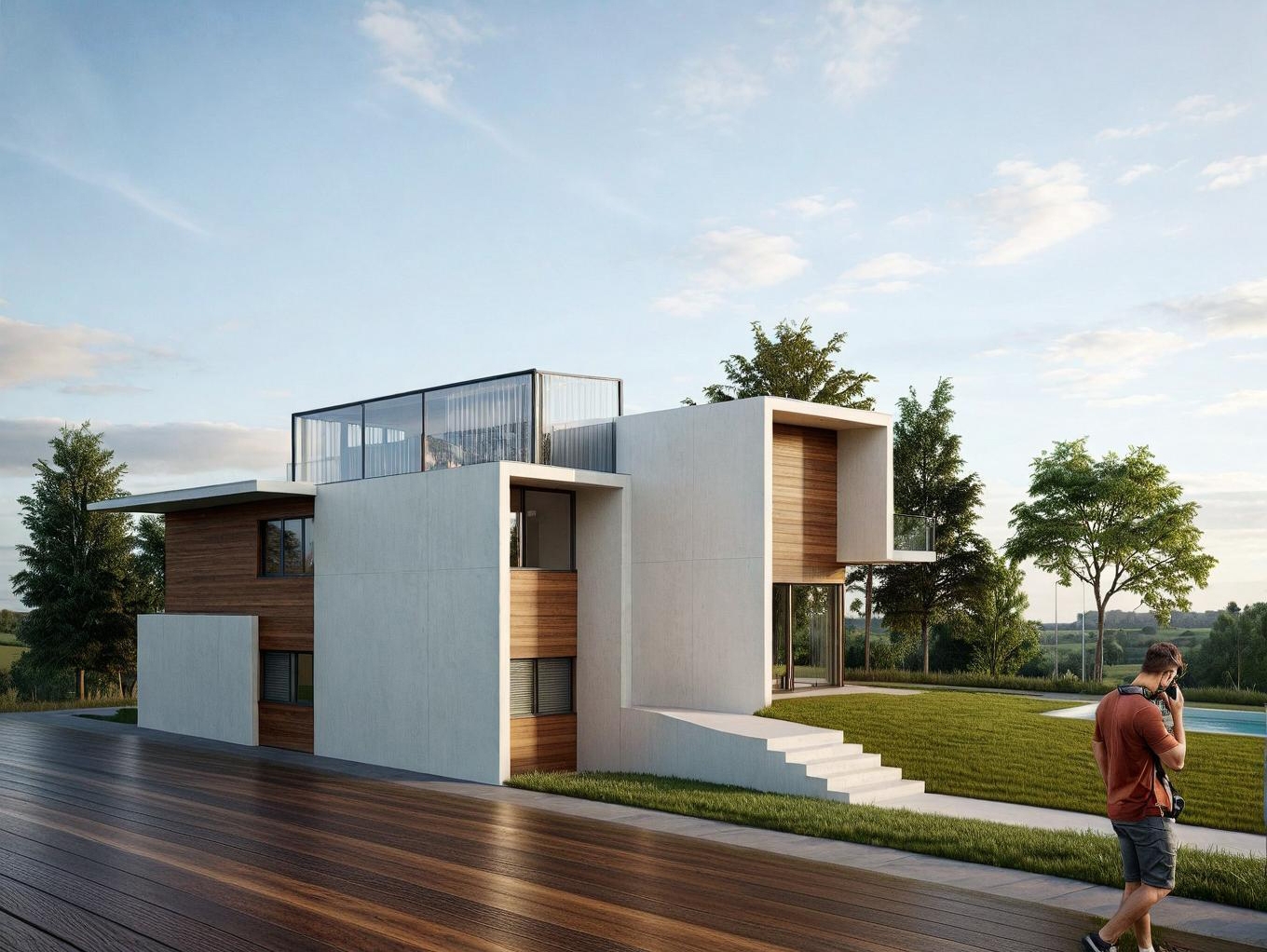 The house is composed of prismatic volumes in which white concrete elements wrap timber-clad bodies, creating a duality between solidity and warmth. This configuration allows for a layout that opens onto the garden and views, while remaining protected from the street, establishing a controlled relationship with the surroundings.