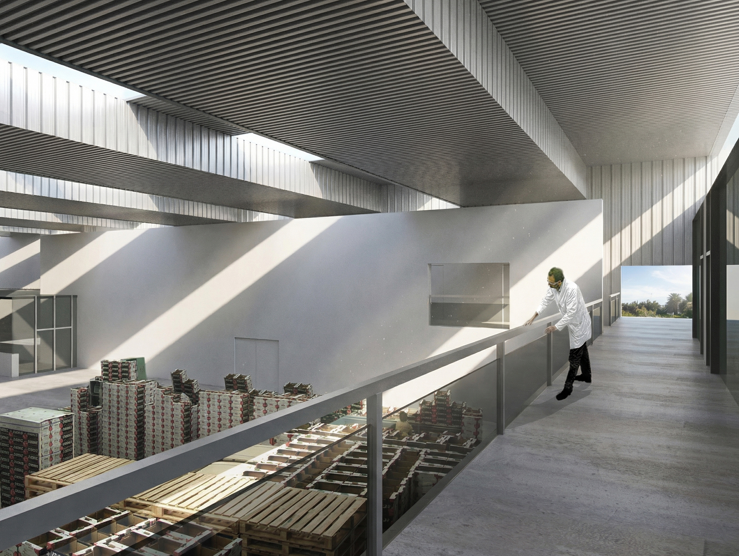 Nave agrícola diseñada con criterios de sostenibilidad y buscando la humanización d ellos espacios agroindustriales.