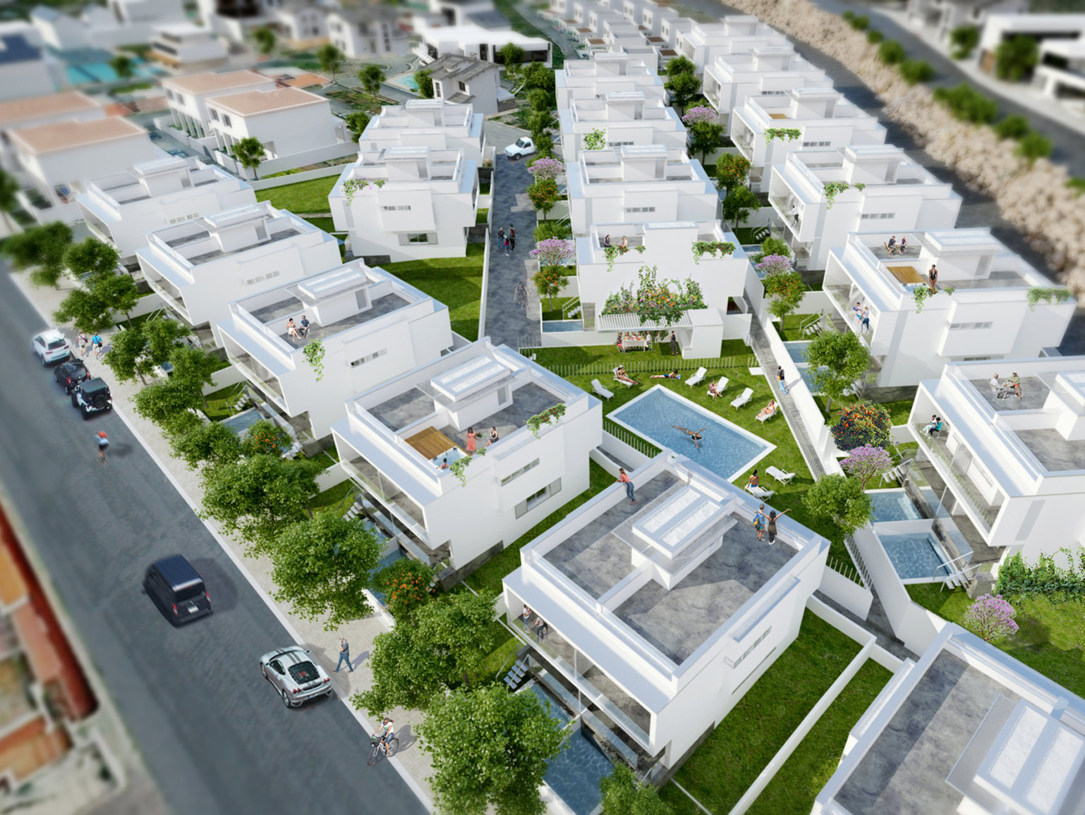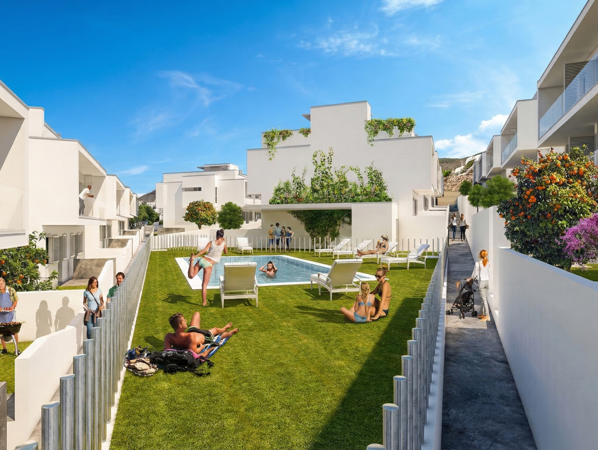 35 viviendas pareadas que disponen de una piscina comunitaria a escasos metros de la playa.