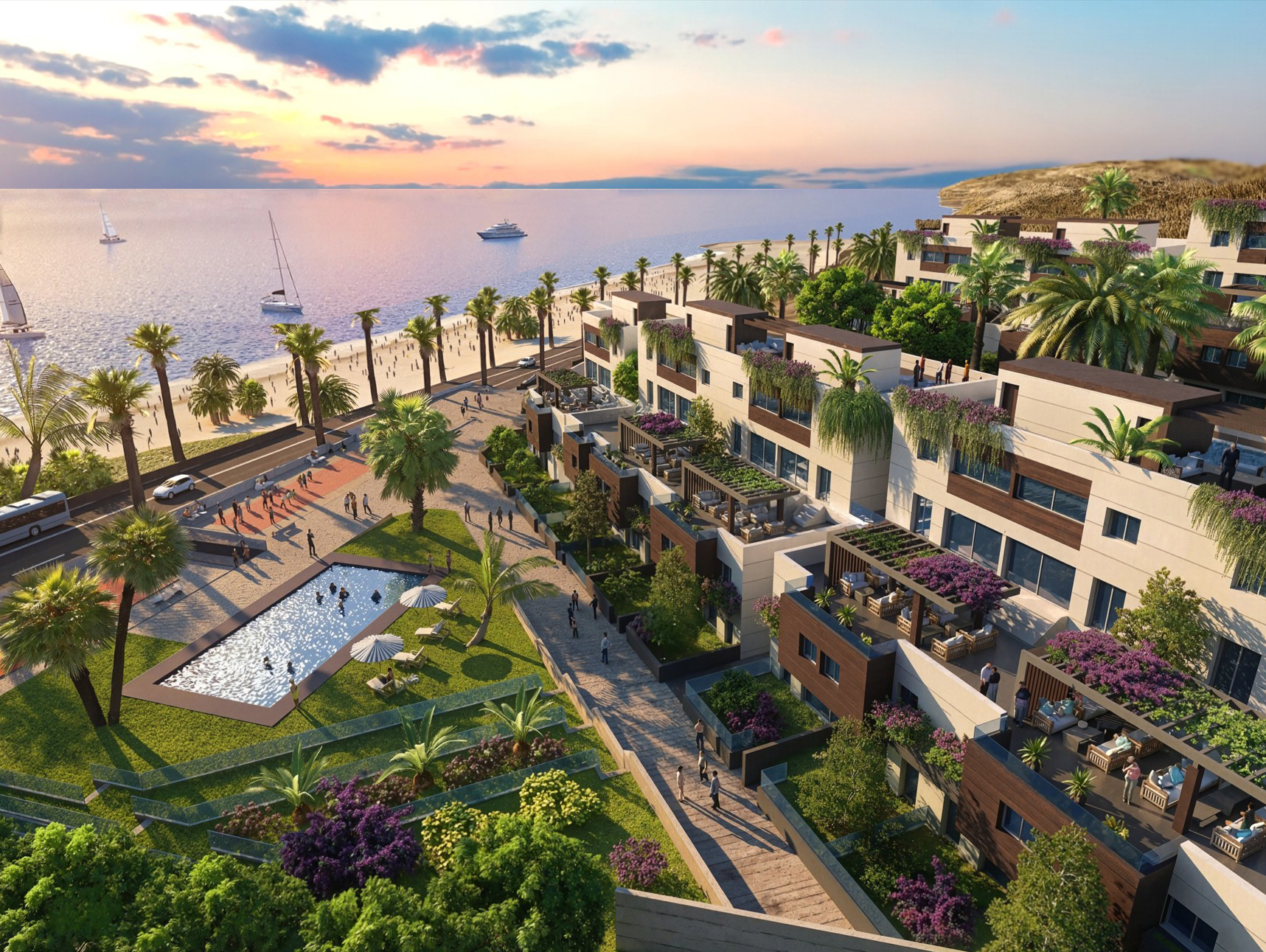 Se plantea un proyecto perfectamente adatado e integrado a la topografía de terreno que presenta una pendiente muy acusada. Todas las viviendas disponen de terrazas con vistas al mar.